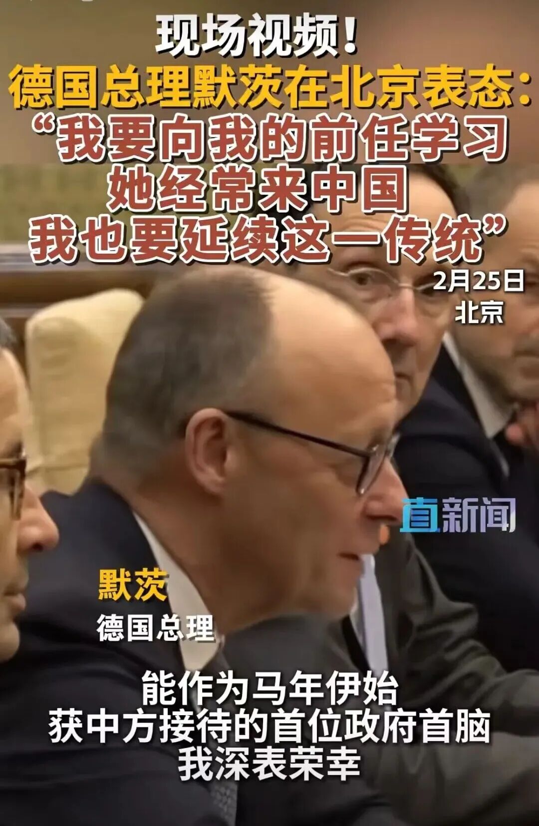 在与中方领导人会晤的时候,默茨说,他要向他的前任默克尔学习,延续"经常来中国"的传统。