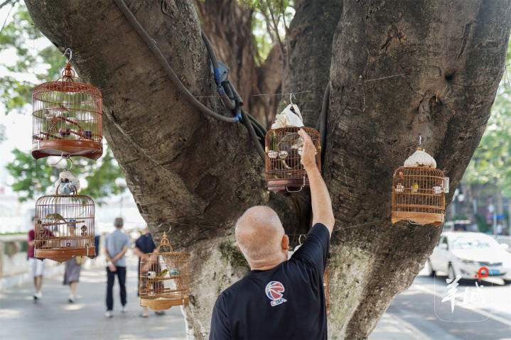 两棵榕树,两张石凳,几个鸟笼,一群闲逸的街坊。鸟笼里有本地鸟,有外国鸟优配合伙人,一起叽叽喳喳在树下叫个不停。鸟很热闹,鸟主们也没闲着。大家都是相熟多年的老街坊,坐在一起,嬉笑怒骂,频频引来路人瞩目,也并不在意。